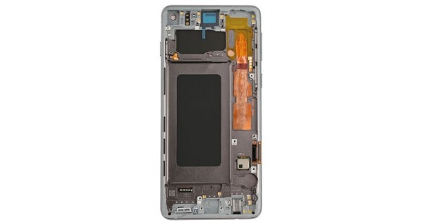 Код товара: Средняя часть корпуса с рамкой модуля Samsung Galaxy S10 (SM-G973) серебристый